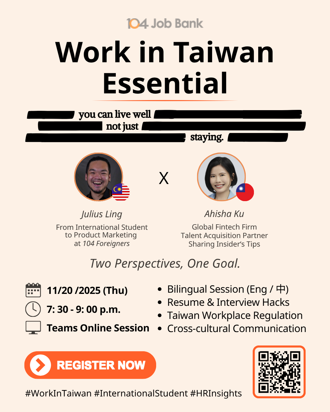 Foreigner in Taiwan × Taiwan HR|Expat Career Online Session